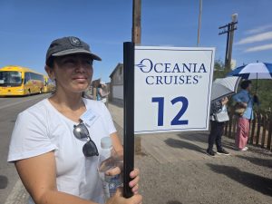 Un total de 12 buses, trasladaron a los 12 grupos de cruceristas que llegaron a Humberstone, a los que se sumaron tour privados, sumando más de 400 visitantes que recalaron en el Crucero Vista, de  Oceanía Cruises y, operado por la agencia Agunsa.